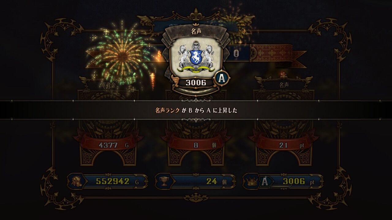 名声ランクがAに上昇。5人部隊を組めるようになった。勲章足りねえけどな!