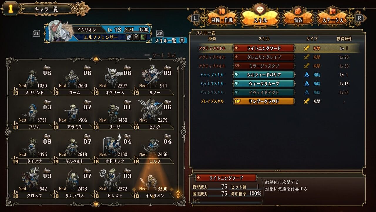 ロザリンデが「シルフィードウインド」を習得。コストの重さは気になるが多段ヒット列攻撃の魔法。重装兵どもをまとめて溶かすの楽しそう。