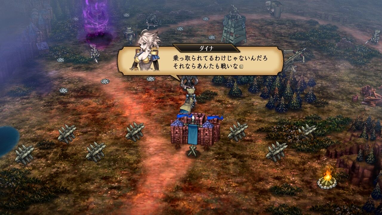 上のスクショ右上のあたり、会話マークが出ている敵ユニット(赤)はこれから説得予定のダイナの同胞。