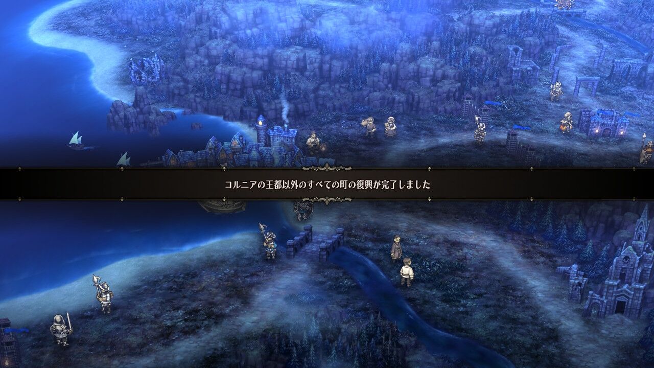 ソームの町を解放→復興して、コルニアのすべての復興が完了。ちなみにドラケンガルドは先に復興完了している。