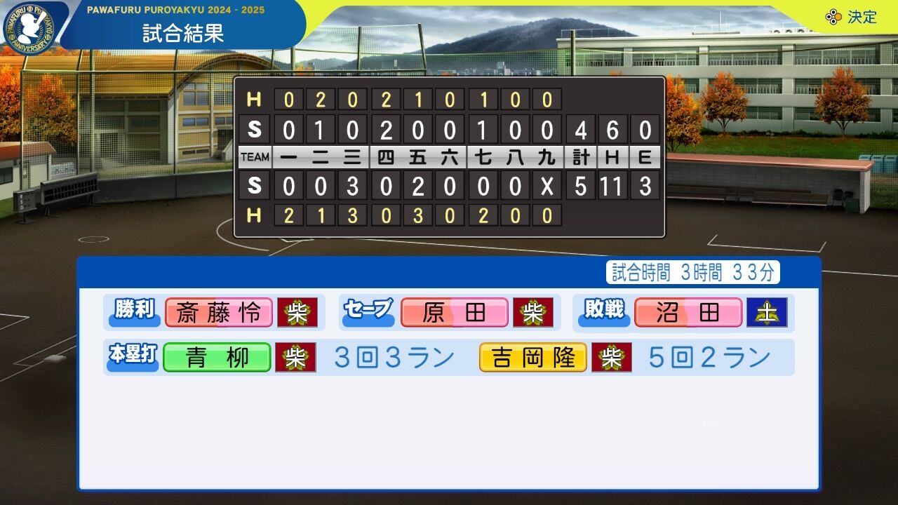1年生原田にセーブがついたってことは斎藤がスタミナ切れで降板したんだったかな。青柳の野手転向で2年投手が他にいないので、1年がリリーフを担うしかない世代。