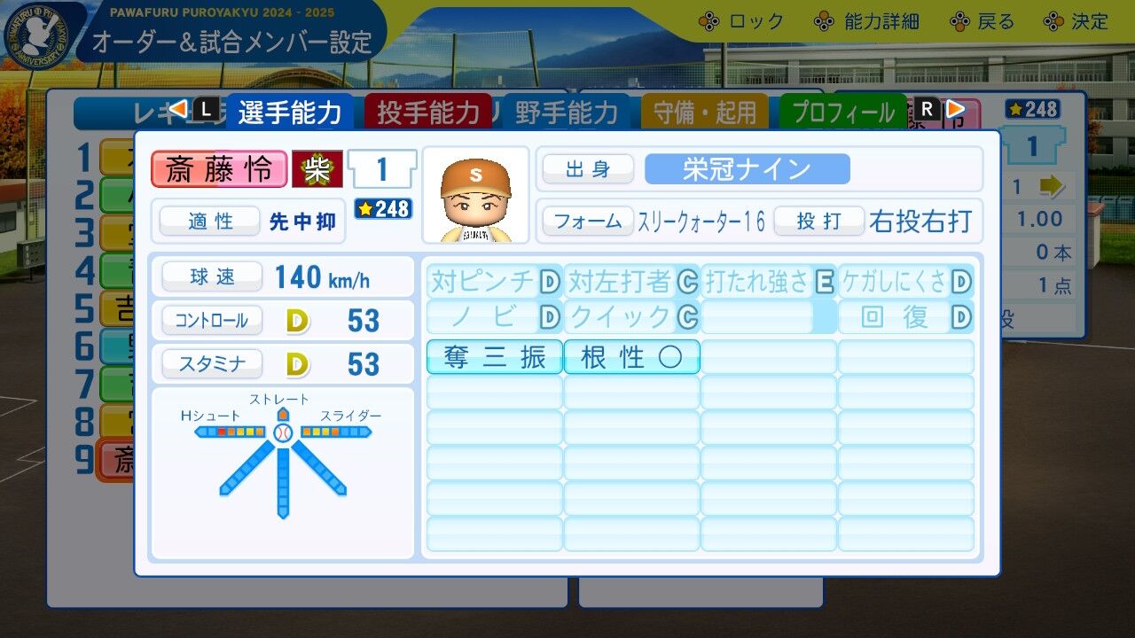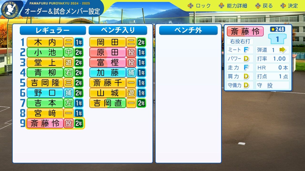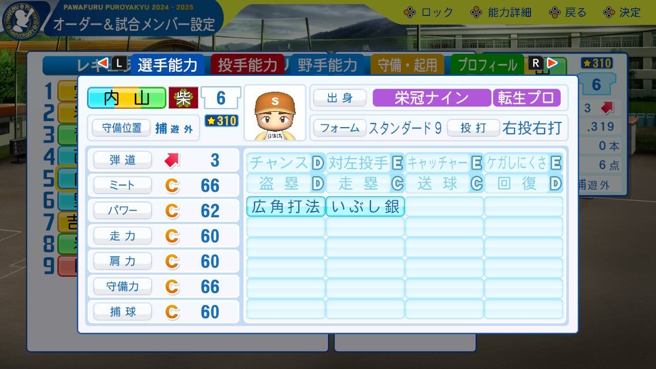 凡才ながら、去年卒業の転生選手吉永とほぼ同等の能力。主砲として最後の夏を彩ってほしい。