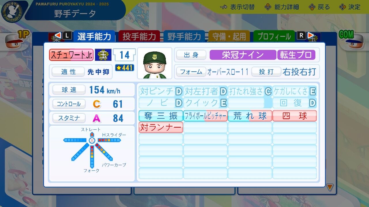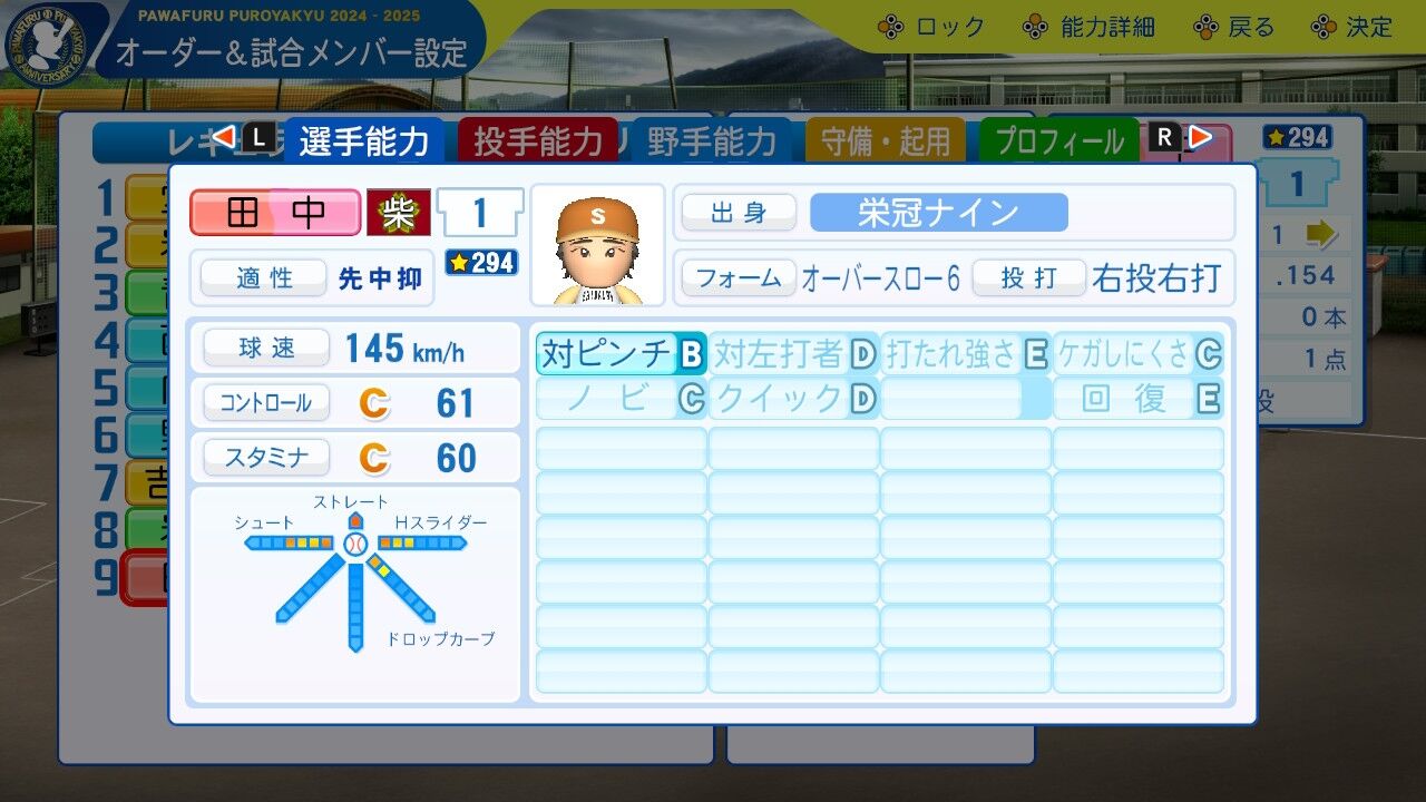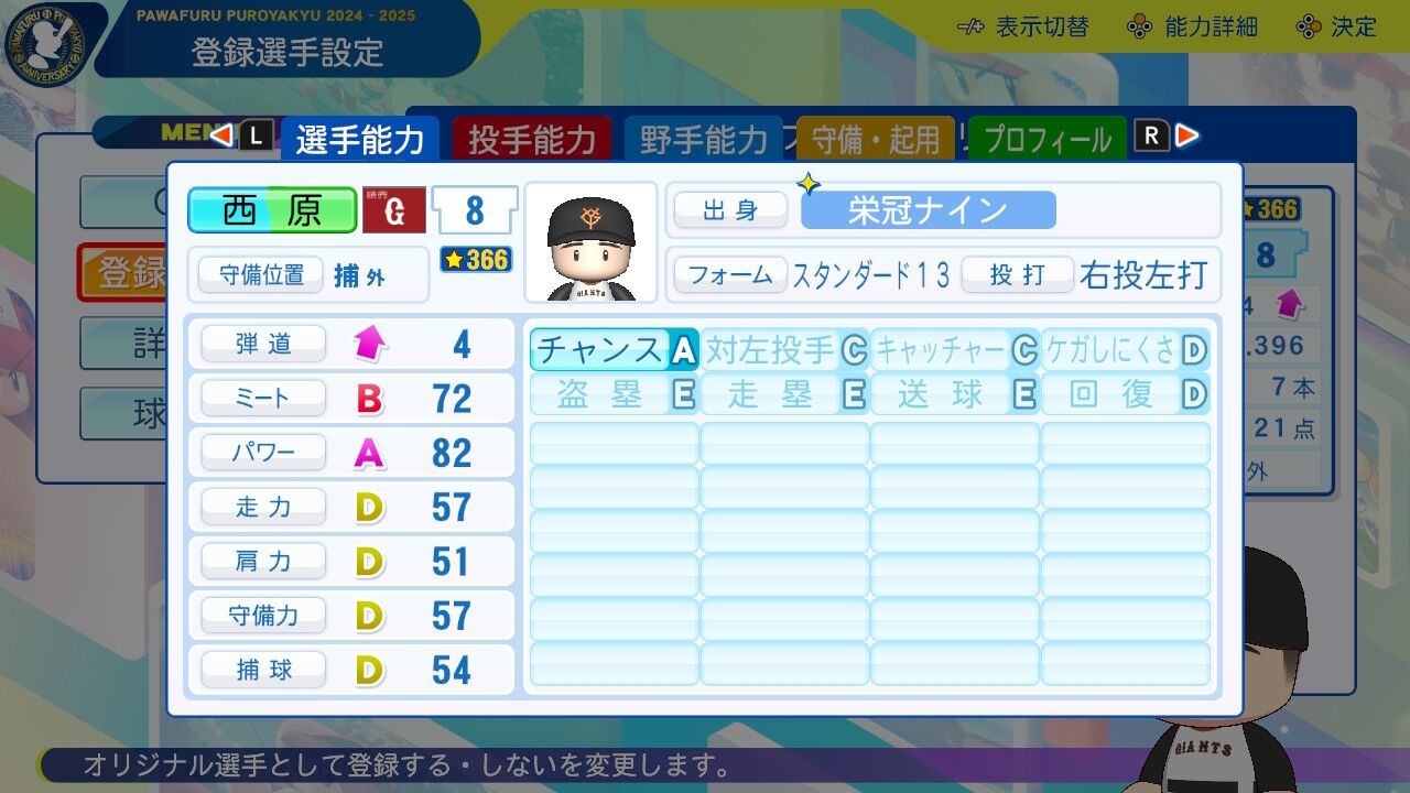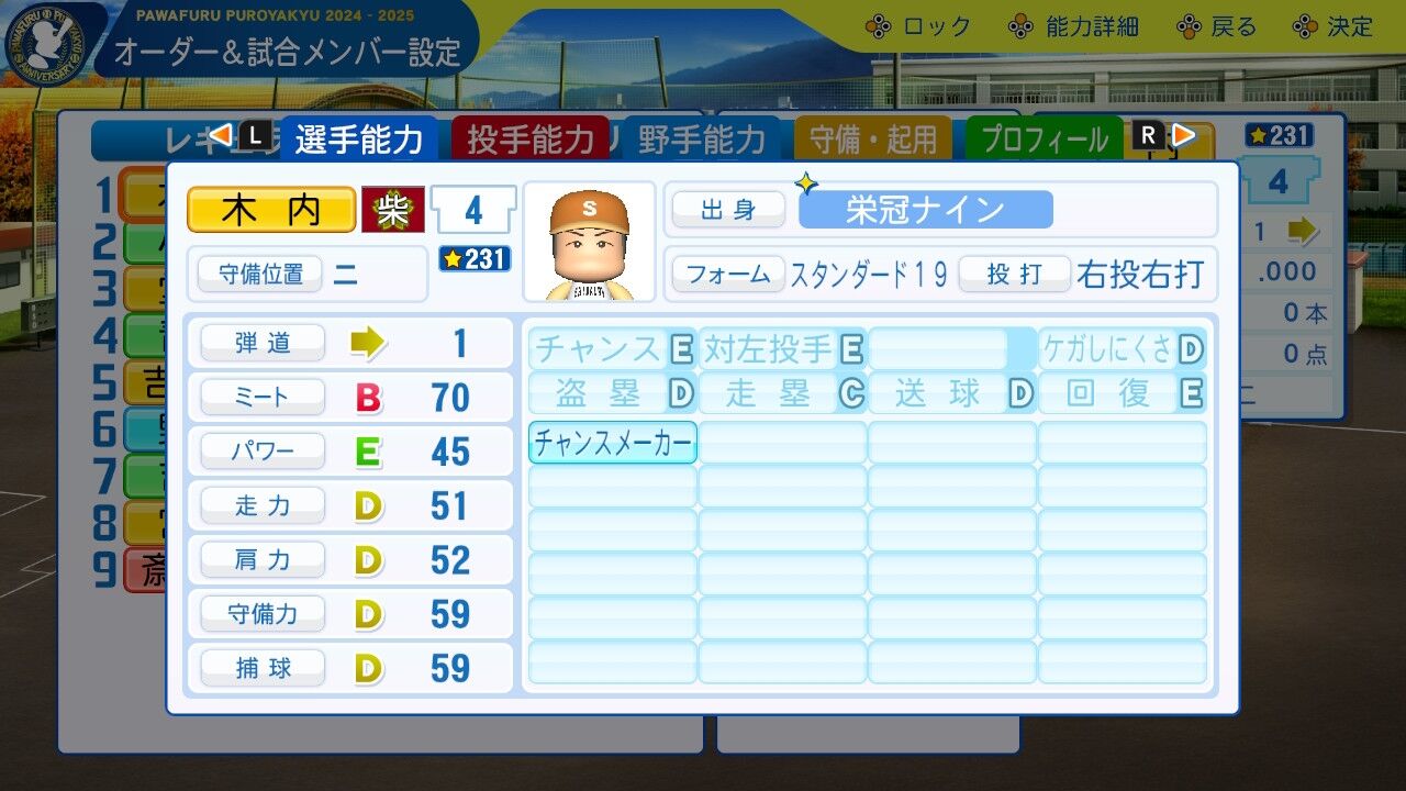 まあスタその3。捕球は高いけどね。ムード◯ついてるし、ベンチに置いとくだけでも仕事するのは優秀。