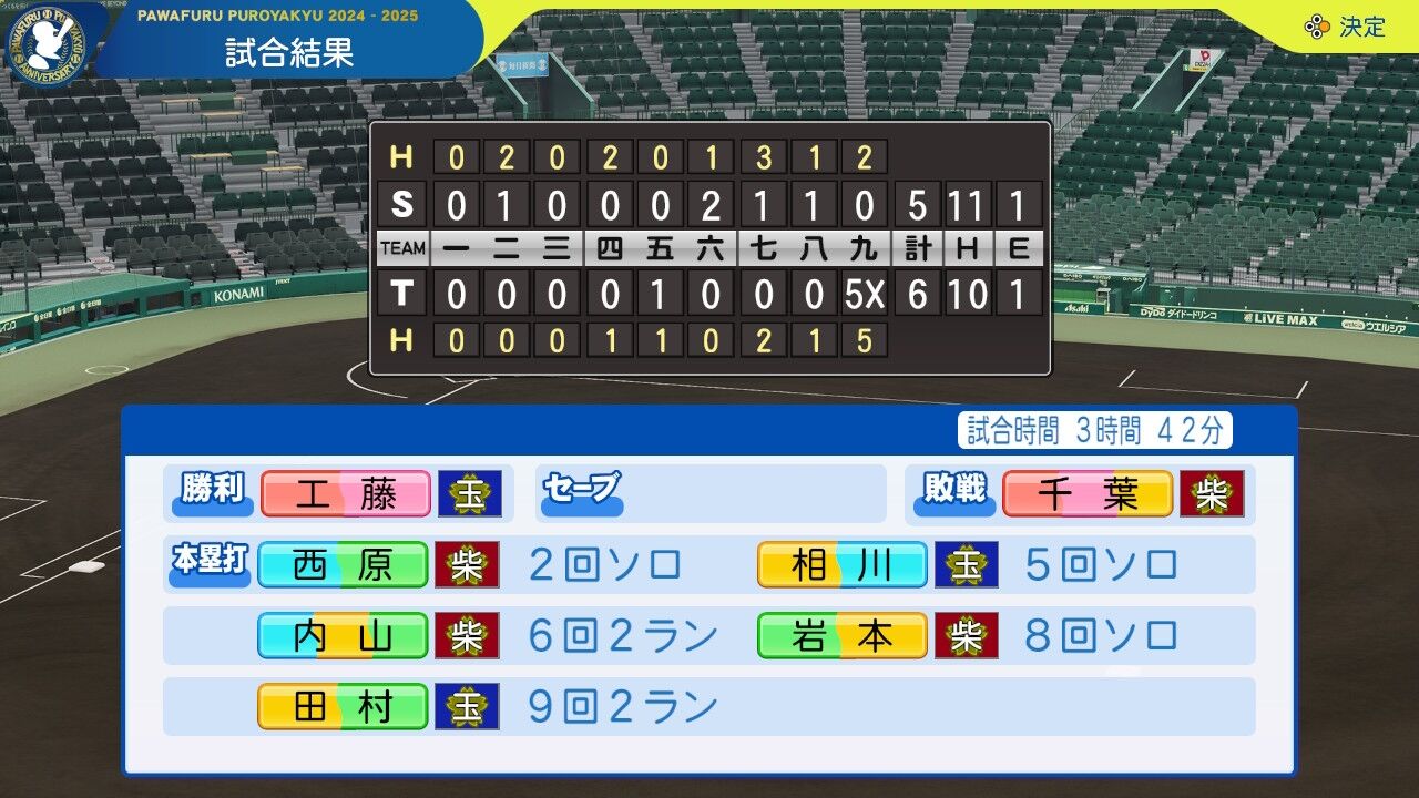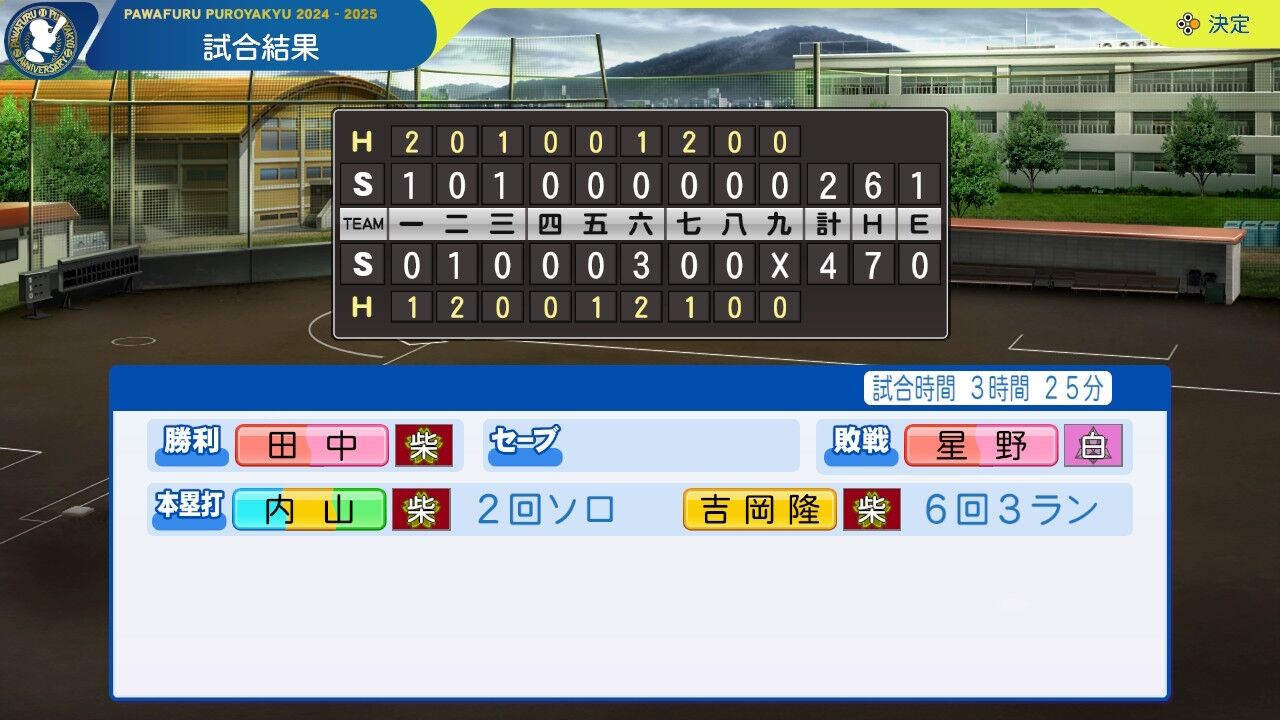 吉岡隆の逆転3ランが飛び出しなんとか勝利。エース田中もここまでよく抑えている。