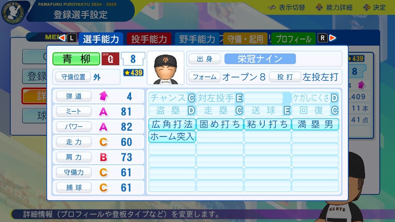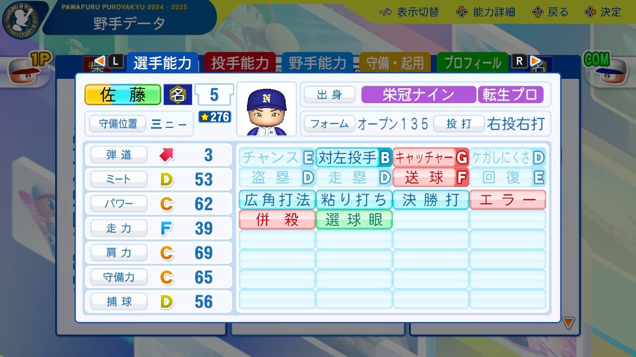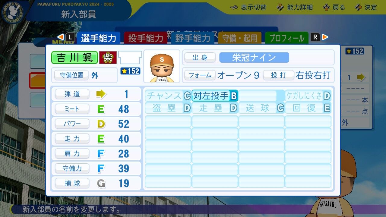 スカウト選手。なかなかの基礎能力に加え、チャンスA持ってるのえらい。ポイントゲッターとして活躍してほしい。