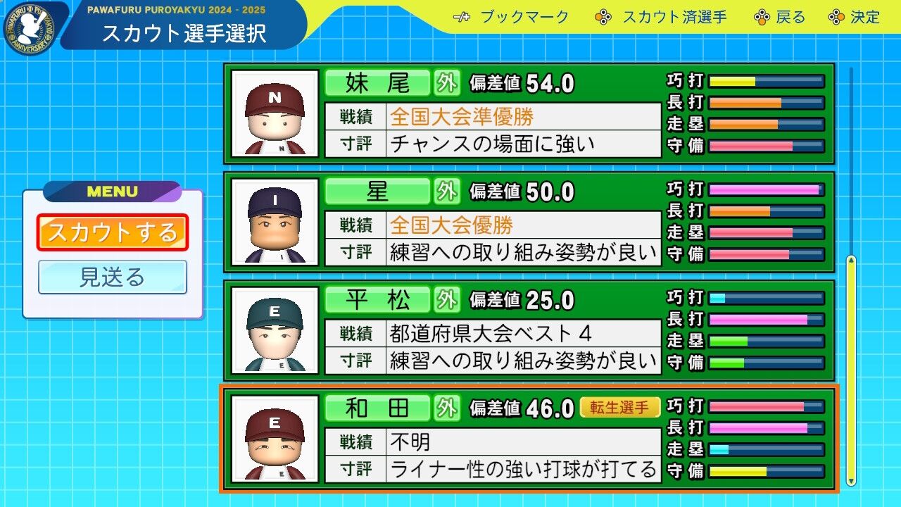 思い出の選手ということもあり迷わずスカウト。能力で言ったら星の方が強そうだが、たぶん青特モリモリでめっちゃ強いっしょ。