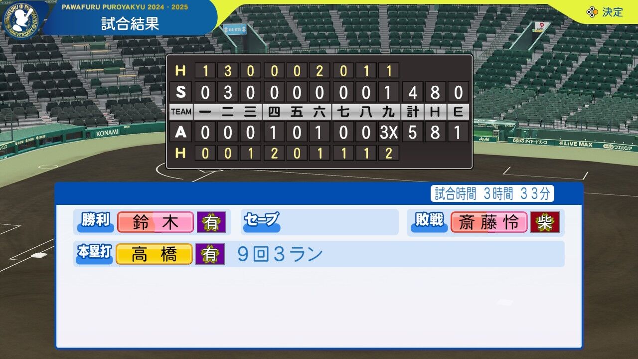 終盤に打線が大爆発、2年連続の甲子園出場を決める。やったぜ!!!