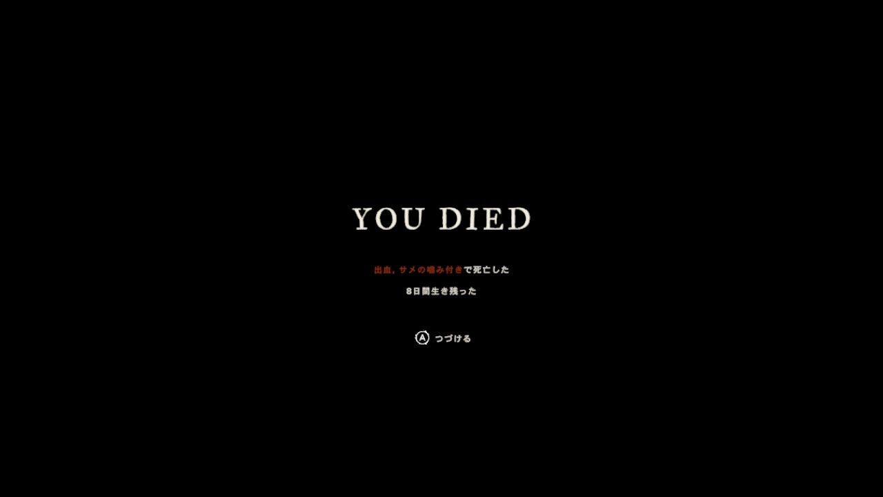 ハンマーヘッドシャークに襲われて2回目の死亡。勝てそうな雰囲気もあったんだけどな……無理か。