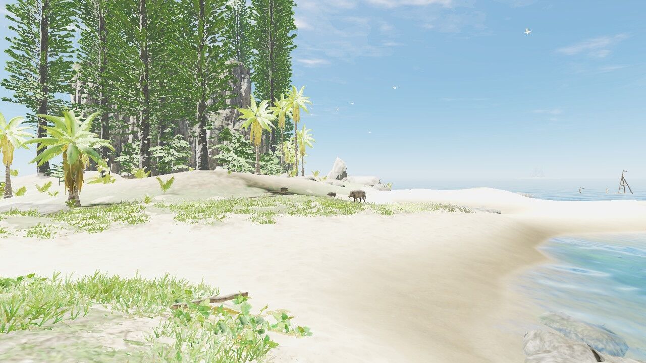 サバイバルの舞台となる小島に上陸。流石に明るさ上げすぎて眩しいか?