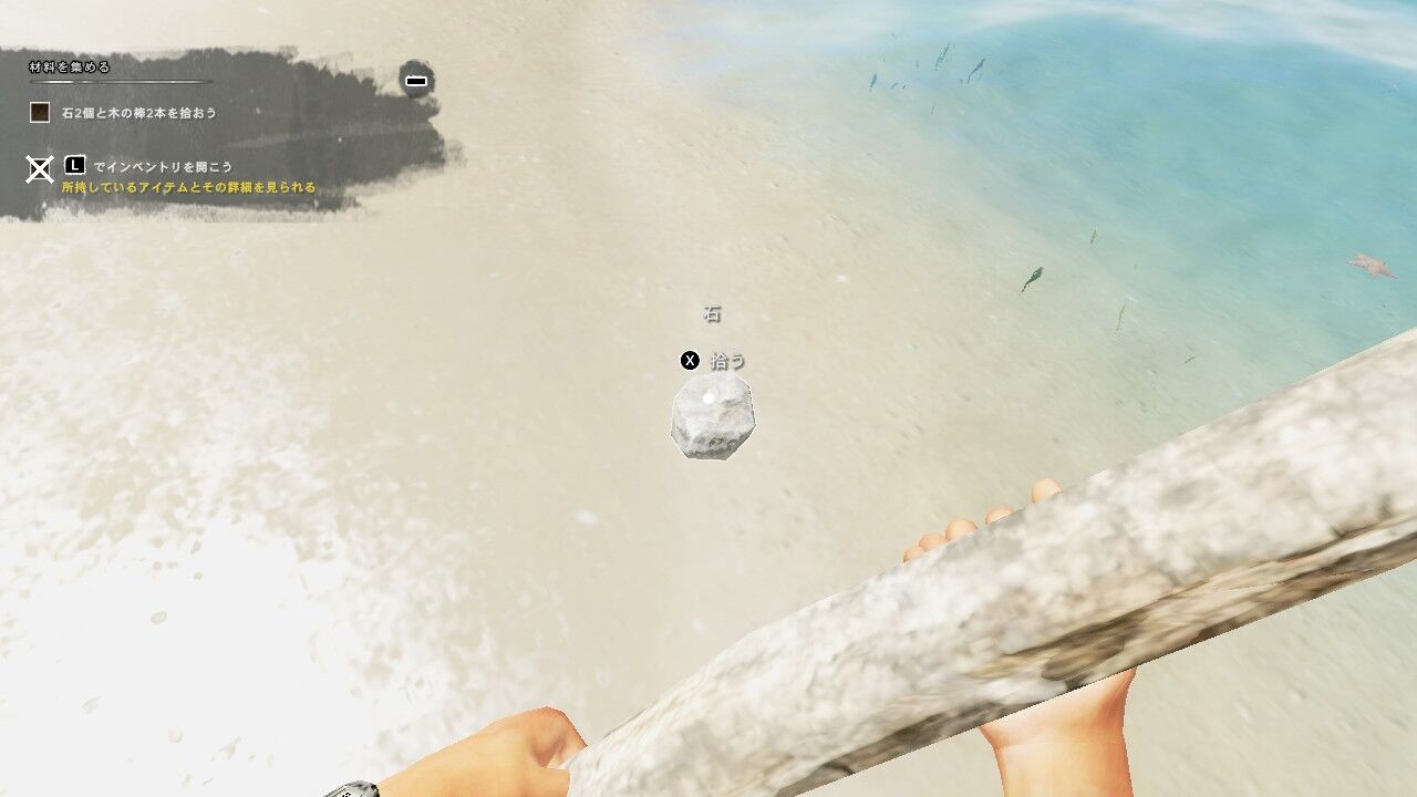 サバイバル系ゲーム恒例、石だの木だのを拾い集めるところからスタート。地味に楽しいんだよなこういうの。