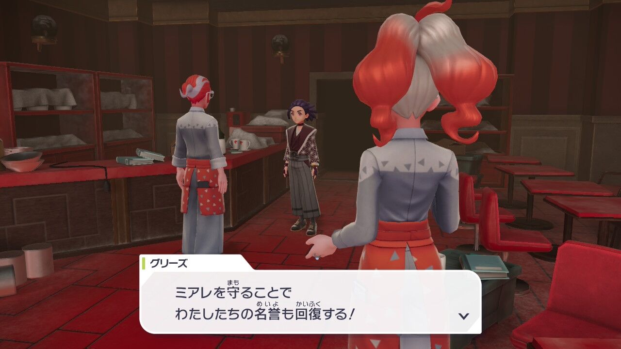 グリーズに勝つと、彼らのアジトであるフラダリカフェに入れてもらった。内装は真っ赤っ赤。金田一少年の事件簿でさ、薬物中毒者が赤に執着して内装真っ赤にする話あったよな。