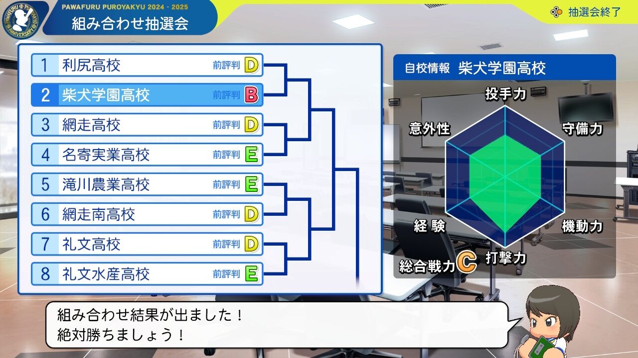 2回戦は北海道同士の潰し合い。南北海道の虻田学園。それなりに強敵なBランクだが、甲子園ならスタンダードな相手と言える。