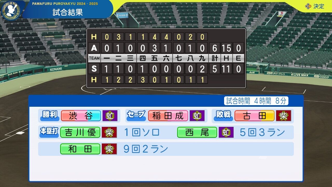8回裏に逆転勝ちと、なかなか際どい試合だった。