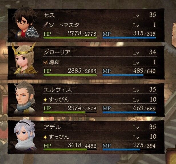 いろんなジョブをマスターしながらアビリティを組み合わせていく育成システムやっぱり面白い。オクトパストラベラーも面白かったけど、ジョブポイントさえ稼げば色んなジョブを使う必要がなかった。転職を繰り返してキャラ育成を進めるブレイブリーシリーズのシステムが自分好み。